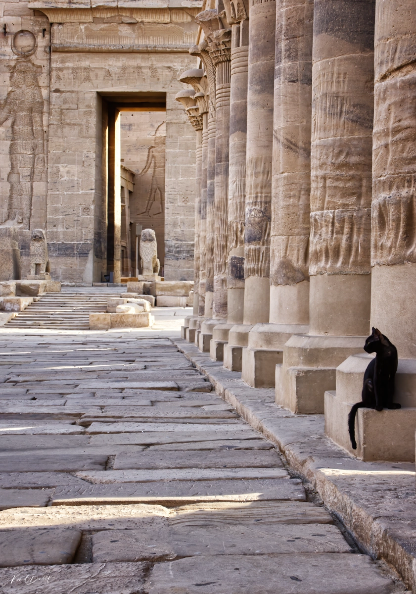 Un chat noir, paisiblement installé parmi les colonnes, semble en être le gardien silencieux, témoin immobile de l’histoire millénaire du lieu.