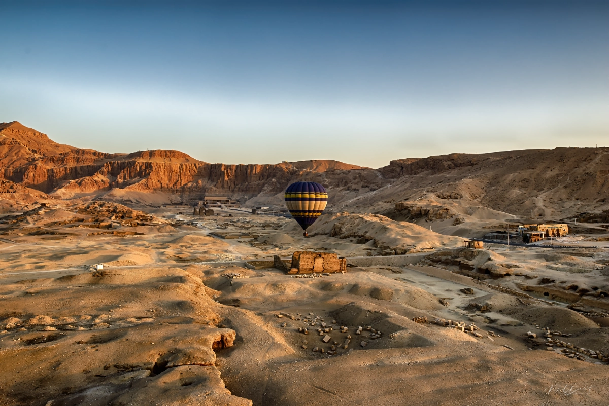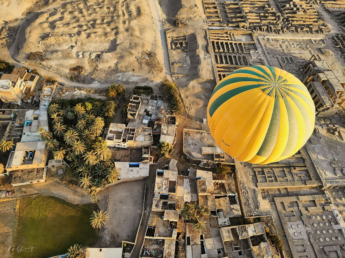 Pour un photographe, c’est un instant hors du temps, une quête du cadre parfait où la douceur du lever du soleil sublime les contrastes entre le désert, la verdure et les vestiges antiques. L’objectif capte la magie du moment, cette lumière éphémère qui enveloppe les reliefs, transformant la Vallée des Rois en une fresque vivante. Suspendu dans les airs, l’appareil photo en main, difficile de ne pas ressentir l’euphorie d’un privilège rare : voir l’Égypte sous un angle que même les pharaons n’ont jamais connu.