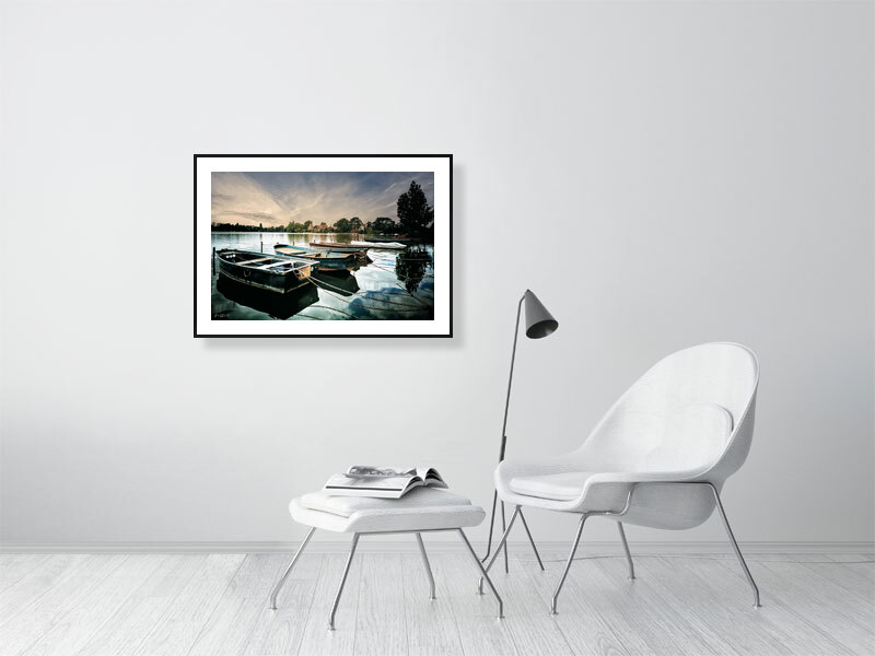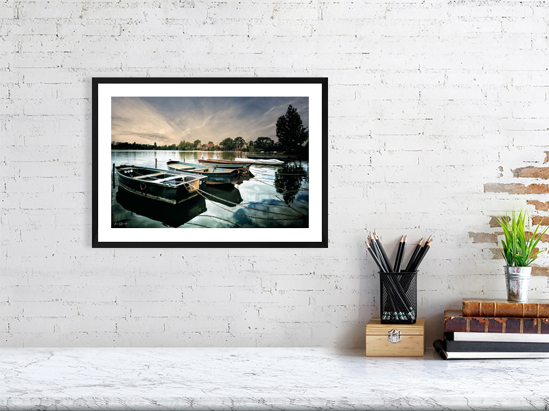 - Encadrement : Noir, bois massif, fabriqué à la main avec un passe-partout blanc.